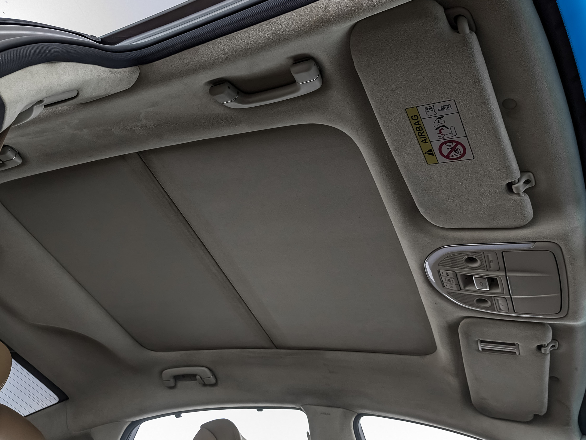 Отделка потолка, солнцезащитных козырьков и передних стоек замшей